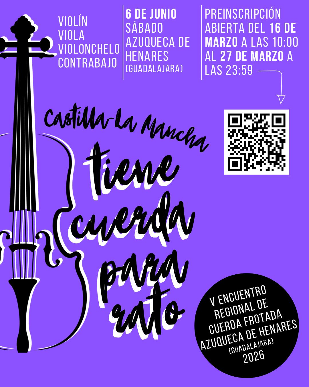 El 6 de junio tendrá lugar en la provincia de Guadalajara el V Encuentro Regional de cuerda frotada «Castilla-La Mancha tiene cuerda para rato» con la participación de alumnado y profesorado de conservatorios de la región